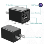 Mini USB Charger Design: The camera is disguised as a mini USB charger, allowing it to blend in with other electrical devices and go unnoticed.