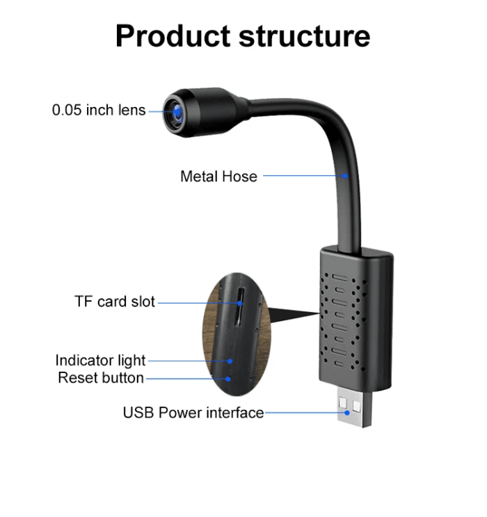 Introducing our Indoor Cameras 1080p HD USB Interface Mini Wireless Spy Camera, a compact and versatile surveillance solution designed to meet your security needs. This discreet mini camera is equipped with advanced features to ensure high-quality video and audio recording, making it an ideal choice for various applications.