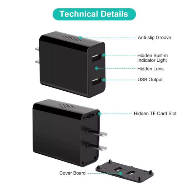 • Introducing our Full HD Wireless Spy Camera Charger with 2 Port USB Wall Charger Adapter – the ultimate solution for discreet monitoring and surveillance needs. This innovative device seamlessly integrates into any environment, offering covert recording capabilities with the convenience of a standard USB wall charger.