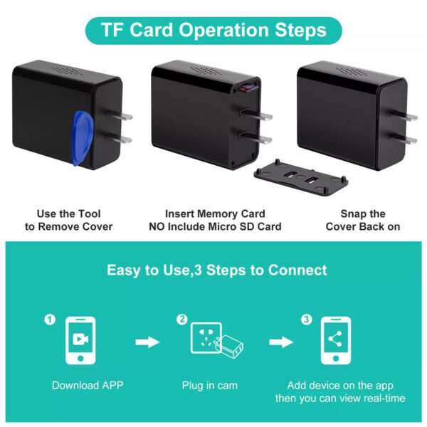 • With its sleek and compact design, this spy camera charger blends effortlessly into any room, making it virtually undetectable to the untrained eye. Equipped with advanced WiFi connectivity, you can remotely view live footage from anywhere using your smartphone or tablet, providing you with peace of mind and real-time monitoring capabilities.