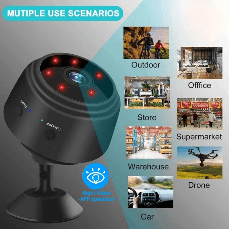 Introducing the A9 1080P Magnetic Wireless WiFi Mini Spy Camera, a cutting-edge solution that redefines home security with its advanced features and discreet design. This mini surveillance camera is designed to cater to the modern need for comprehensive monitoring without compromising on simplicity.