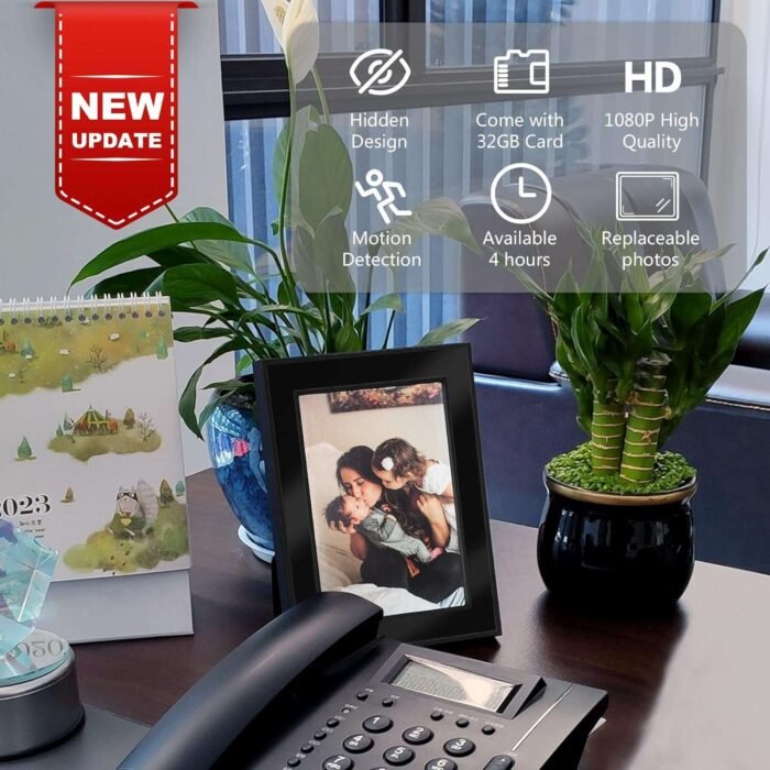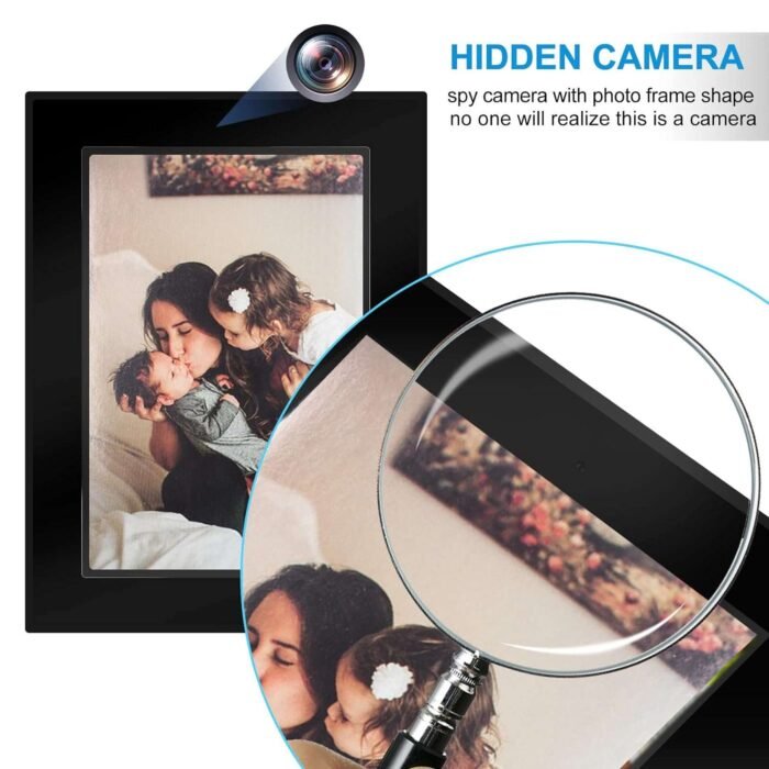 Introducing our Mini Photo Frame Spy Camera in a Picture Frame, a discreet and portable surveillance solution designed for home monitoring. This mini spy photo frame camera seamlessly blends into your living space, whether placed on a table or hung on the wall, providing a subtle yet effective tool to safeguard you and your family.
