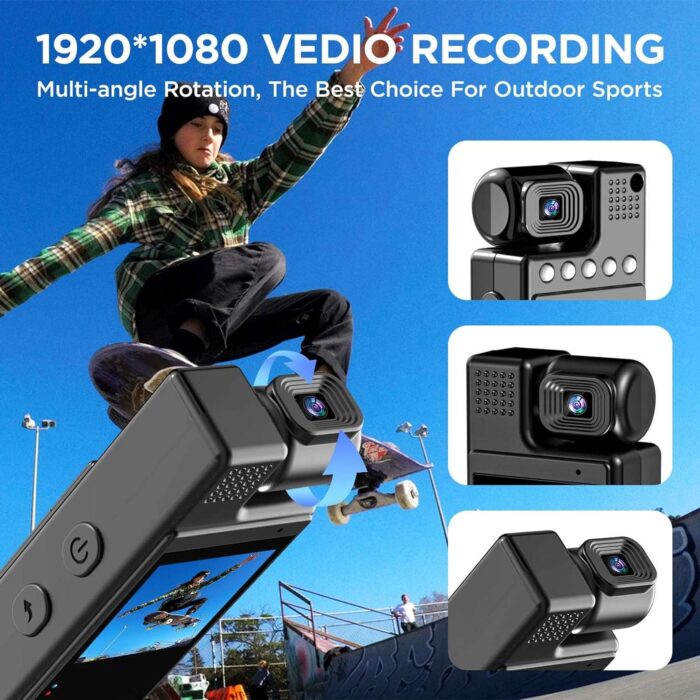 Featuring a 180° rotatable lens, our camera allows you to capture footage from any desired angle effortlessly. Adjust the image by pressing and holding the up key when the lens is rotated to the front. The “return key” enables loop recording, ensuring continuous video capture. The “OK button” allows simultaneous video recording and photo capture during operation.
