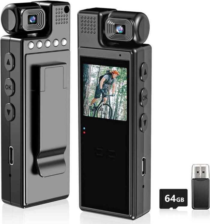 Equipped with five LED spotlights, this law enforcement recorder excels in low-light environments, ensuring practicality in various conditions. The portable camera comes with a generous 64GB storage capacity, capable of holding up to 6 hours of videos and pictures.