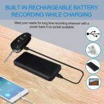 The device has a built-in battery that provides approximately 100 minutes of recording time before needing a recharge.