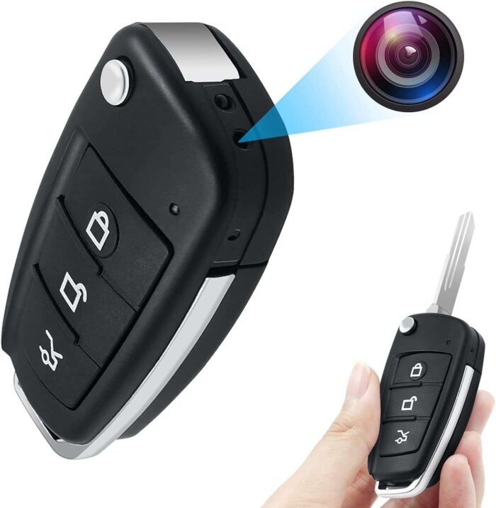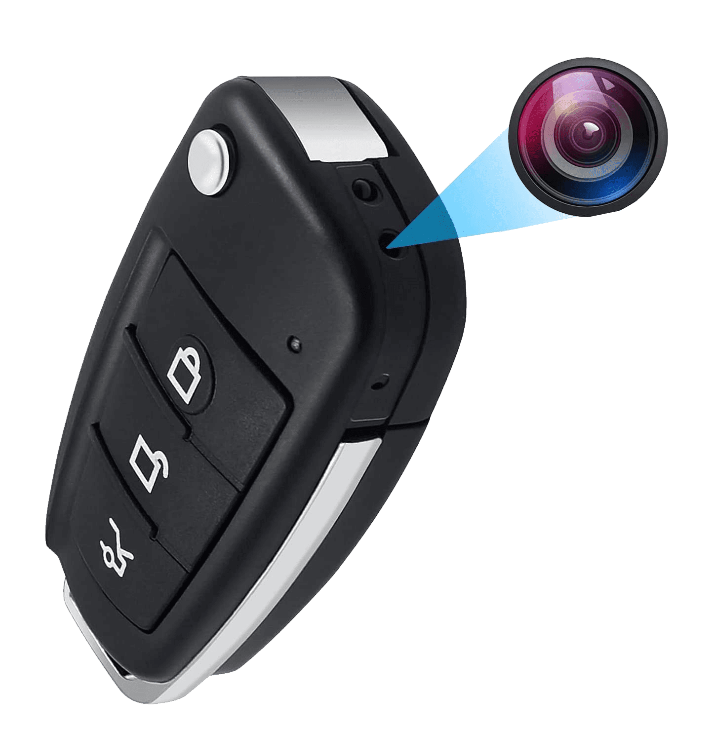 The camera is designed to resemble a car key remote, providing a discreet and covert way to capture video without drawing attention.