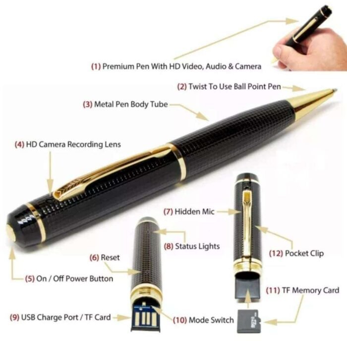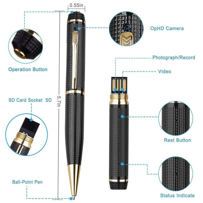 - Enhance your surveillance capabilities with the Spy Pen Camera HD – a reliable, compact, and stylish device that ensures you’re always prepared to capture crucial moments.